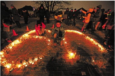 3月23日,市民在莫斯科市区内参加“地球一小时”活动。 新华社发