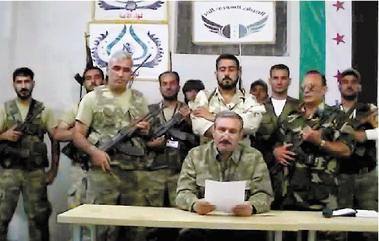一名土耳其官员3月25日证实,叙利亚反对派主要武装派别“叙利亚自由军”领导人里亚德·阿萨德24日晚在叙利亚代尔祖尔省南部城市迈亚丁遭袭击,受伤后送往土耳其治疗,一条腿截肢,伤情不危及生命。这张里亚德·阿萨德(中)的资料照片是2012年9月22日在视频网站发布的一段视频的截图。 新华社发
