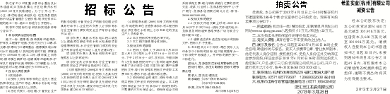 受委托,本公司将于2013年4月12日上午10时整在杭州市建国南路288号十楼会议室举行公开拍卖会。现将有关拍卖事项公告如下: