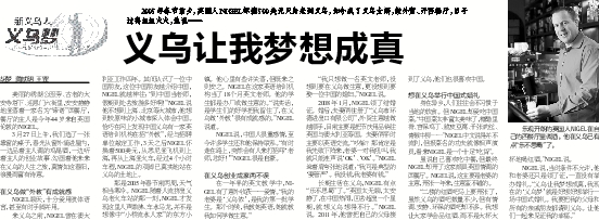 “我只想做一名英文老师,没想到要在义乌做生意,更没想到要娶一位中国的媳妇。”NIGEL说。