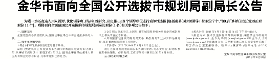 金华市面向全国公开选拔市规划局副局长公告