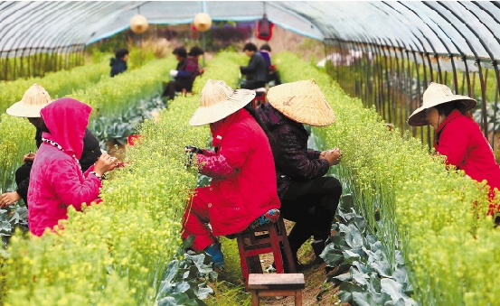 4月3日,瑞安市马屿镇花椰菜专业村——上郑村2000多名农家女在田头为花椰菜授粉育种, 构成春日乡间的一道美景。