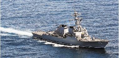 这是美国海军“麦凯恩”号导弹驱逐舰在朝鲜半岛西部水域参加“秃鹫”联合野外机动演习的资料照片(3月21日摄)。 新华社发