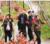 宁波市北仑区凤凰山公墓,志愿者劝导上坟群众文明祭祀。