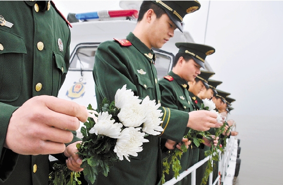 清明节,台州边防支队船艇大队开展“清明祭英烈,传承爱国情”主题教育活动,组织官兵来到一江山岛附近海域,祭奠在解放一江山岛战役中牺牲的革命先烈。