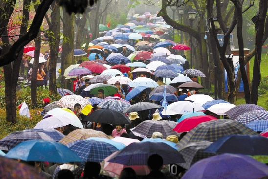 | 4月5日,杭州下起小雨。据省气象台消息,目前北方有一股较强冷空气正在东移南下,受其影响,全省有较明显的降水降温过程。日平均气温的过程降温幅度可达6℃至8℃。4月6日,浙北有时有小雨,上午起雨止转阴到多云;其他地区小雨,下午起雨止转阴到多云。4月7日,全省晴到多云。图为4月5日,杭州苏堤上的游客在五彩缤纷的“伞阵”中穿梭,欣赏雨中西湖的别样美景。 程瑶 文 吴元峰 林云龙 摄 |