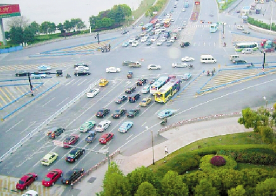 昌安环岛拆除后交通状况明显改观。图为昨天下午5时30分下班高峰期,车辆各行其道。 见习记者 肖艳艳 摄