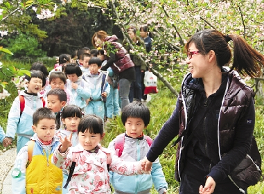 春天是一年中最美的季节,近日,杭州市京都实验幼托园的小朋友背着小书包,来到柳浪闻莺公园寻找春天、感受春天。 冯敏 李珍 摄