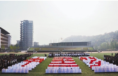 4月8日是中国美院建校85周年校庆日。美院在象山校区举行纪念 “青春,85,我的中国梦”主题活动启动仪式,大学生们用黄白两色拼出了 “中国梦”三个大字。