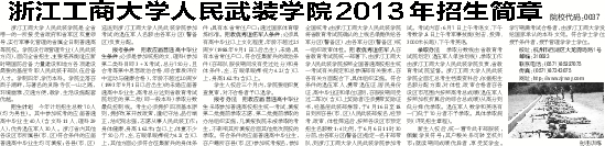 浙江工商大学人民武装学院是全省唯一的一所接受省政府和省军区双重领导,实行军事化管理的省属全日制普通高等院校。学院设行政管理专业(人民武装方向),面向全省招生,主要培养能适应新时期国防后备力量建设和地方各项建设需要的基层专职人民武装干部队伍后备人才。学制四年,学历本科。学院坐落在西子湖畔,与著名的灵隐寺仅一山之隔,环境幽雅,交通方便,教学、生活设施配套优越。