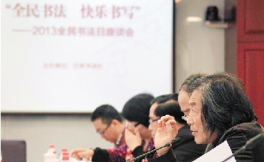 全民书法日座谈会现场,代表畅谈书法重要性。记者 吴煌 实习生 胡海锋 摄
