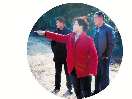 在王村村,驻点局长与村干部一同在现场商量水库维修工程。