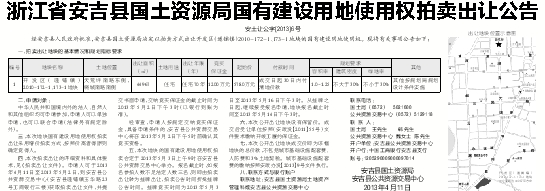 浙江省安吉县国土资源局国有建设用地使用权拍卖出让公告