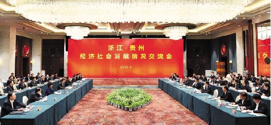 4月10日,浙江——贵州经济社会发展情况交流会在杭举行。 本报记者 黄曙林 摄