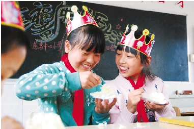 4月11日中午,建德大慈岩中心小学举办了一场特殊的生日聚会——为4月份出生的8名留守儿童过集体生日,让他们感受家的温暖。 宁文武 摄
