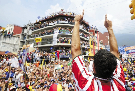4月10日,在委内瑞拉梅里达州,反对派阵营候选人恩里克·卡普里莱斯在一场竞选活动上向支持者致意。14日将举行委内瑞拉总统选举投票,选举结果有望于当晚揭晓。