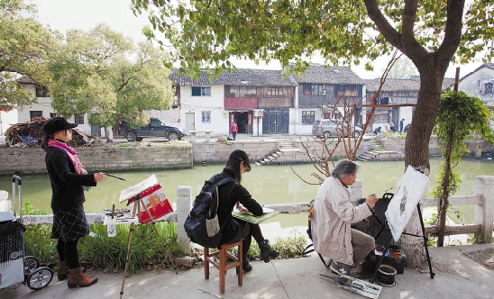 4月上旬,省美术家协会的25位画家走进嘉兴王店镇,用画笔记录下那里的风土人情、秀色美景。这些作品将在10月举行的“朱彝尊文化节”中亮相。 通讯员 梅燮 摄