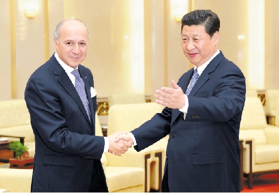 4月12日,国家主席习近平在北京人民大会堂会见法国外长法比尤斯。 新华社记者 张铎 摄