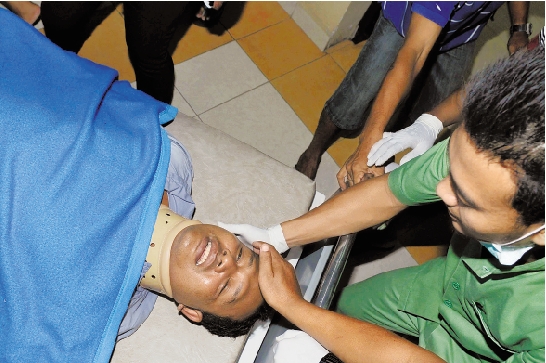 4月13日,在印度尼西亚登巴萨,一名伤者被送到医院接受治疗。 新华社发