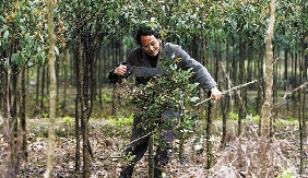 杨子余没有雇用工人,60亩桂花园都是他一个人打理。
