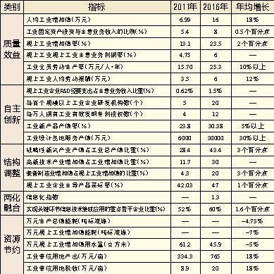 | 结构 调整 | 战略性新兴产业产值占工业总产值比重(%) | 28.4 | 43.4 | 3个百分点 |