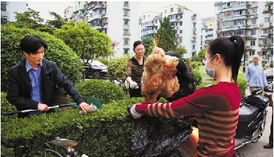 萧山城管制止小区放养鸡。 张祥荣 摄