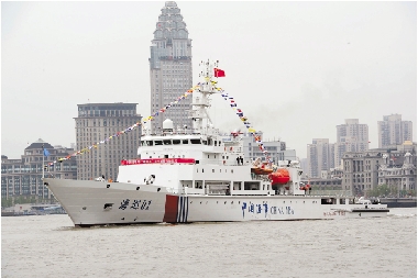 中国海事最大巡航救助一体船正式列编。4月16日在上海黄浦江上拍摄的中国海事巡航救助一体船“海巡01”。当日,中国海事巡航救助一体船“海巡01”轮正式列编上海海事局。“海巡01”轮总长128.6米、船宽16米,排水量5418吨,续航力大于10000海里,是目前中国海事部门规模最大、装备最先进,兼备海事巡航监管和救助功能的综合执法船。 新华社发 |