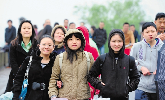 上图 4月20日,西湖边寒意阵阵,游客重新穿上冬装。 里尔 摄