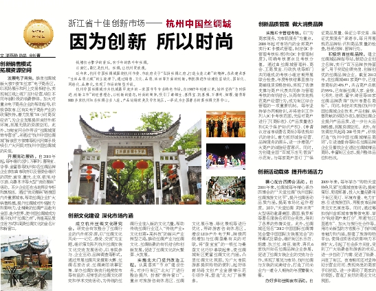 近年来,杭州中国丝绸城围绕杭州市委、市政府关于“弘扬丝绸之府,打造女装之都”的精神,在共建共享“生活品质之城”的主旋律下,通过销售、文化、品质、活动等方面的创新,积极推进市场建设星级化、国际化、网络化、品牌化,实现了市场的转型升级。