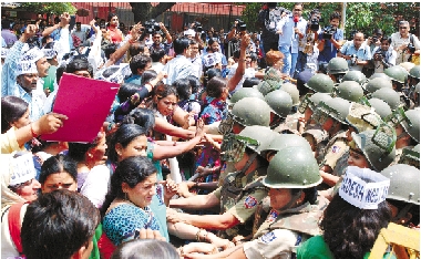 4月22日,在印度首都新德里,人们参加针对强奸女童事件举行的抗议活动时试图冲破警方的路障。印度官员22日说,警方在东部比哈尔邦逮捕5岁女童遭强奸案件的第二名嫌疑人普拉迪普·库马尔。强奸案主要嫌疑人马诺杰·库马尔是女童家房客,20日在比哈尔邦其岳父家中落网。法新社报道,马诺杰告诉警方,普拉迪普参与行凶。 新华社发(帕塔·萨卡尔摄) |