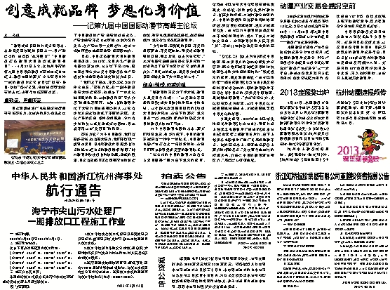 “动画虚拟明星的时代已经到来,米老鼠是最值钱的明星之一,国产孙悟空的‘出场费’也不便宜”、“中国动漫正从动画大国转变成动画强国”……4月27日上午,在杭州举行的第九届中国国际动漫节高峰论坛主论坛上,动漫业届的嘉宾、泰斗等国内外一流的动漫专家学者围绕“创意·品牌·价值”各抒己见,碰撞出智慧和创意的火花,让整个论坛高潮迭起。