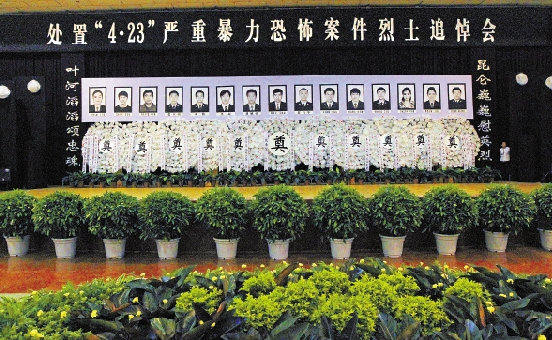 新疆处置“4·23”严重暴力恐怖案件烈士追悼会仪式现场(4月29日摄)。 新华社发