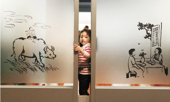 小朋友穿梭在画板之间。