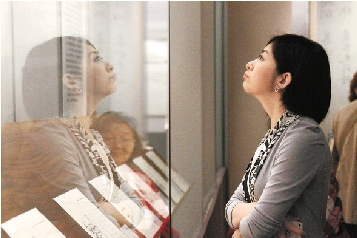 观众在凝神细看。 本报记者 吴煌 通讯员 李选 摄