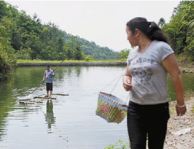 闲时,陈群良在水库里泛起竹筏,好不悠闲。