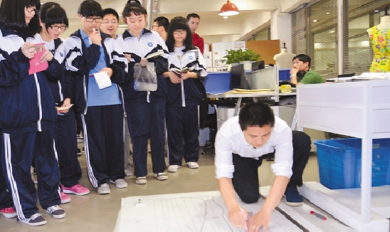 看一件衣服如何制成,也成了课堂教学内容之一。5月30日,嘉兴高级中学中加班学生来到浙江雅莹服装有限公司,看设计师设计样式,了解服装制作过程。
