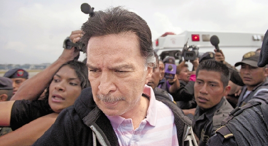 当地时间2013年5月24日,危地马拉前总统阿方索·波蒂略在警方护送现身危地马拉空军机场。 视野网供图