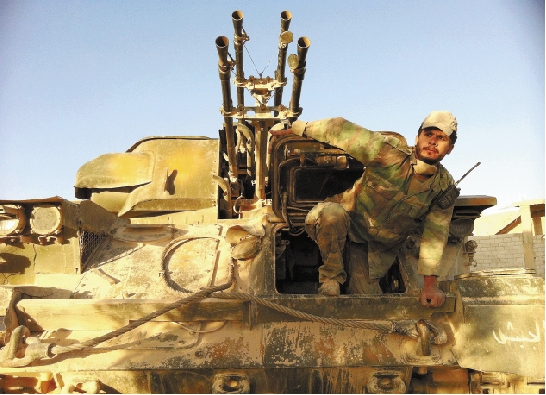 6月4日,在叙利亚西南部的古赛尔镇,一名叙利亚士兵从坦克内爬出来。叙政府军总司令部说,政府军5日完全占领古塞尔镇。古塞尔镇是叙冲突双方在中部地区争夺的战略要地,是反对派运送补给的重要通道。 新华社发