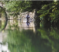 澧浦镇东溪里郑村段,村民在埠头上洗衣服。