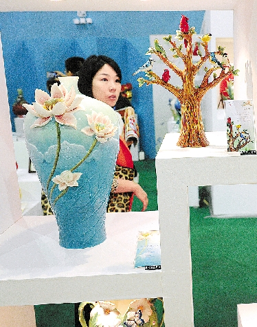 6月8日,在消博会中国浙江进口商品展览会上,各种商品琳琅满目。图为台湾商品展区展出的精美法蓝瓷。 本报记者 吴元峰 摄