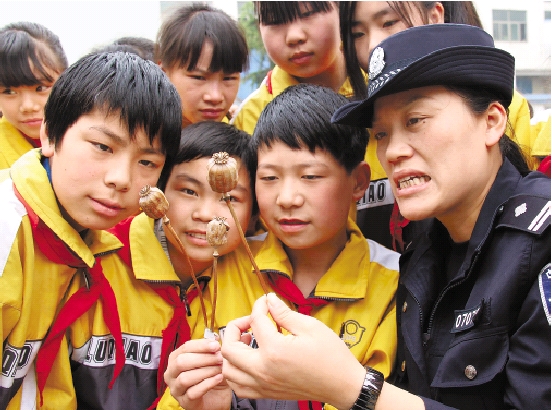 台州公安局路桥派出所民警走进阳光民工子弟学校,为孩子们上了一堂禁毒教育课。蒋友亲 摄