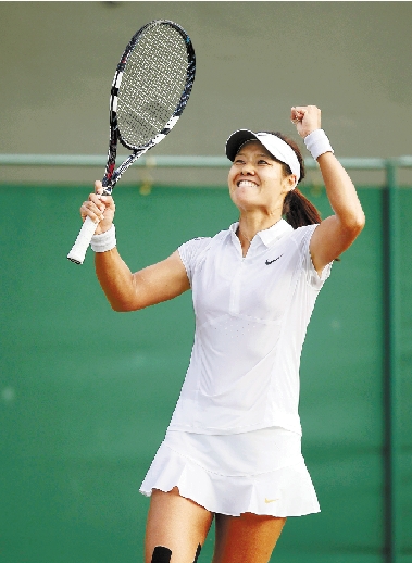 6月29日,中国选手李娜庆祝比赛获胜。 新华社发