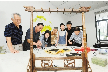 日前,杭州市丁桥镇在皋城村、沿山村投资350万余元建设的近1000平方米综合性农村文化礼堂正式启用。图为皋城村书画社活动。