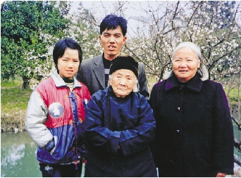 四代人的合影。左起:杨希晨、杨辉军、高阿二、叶桂凤。