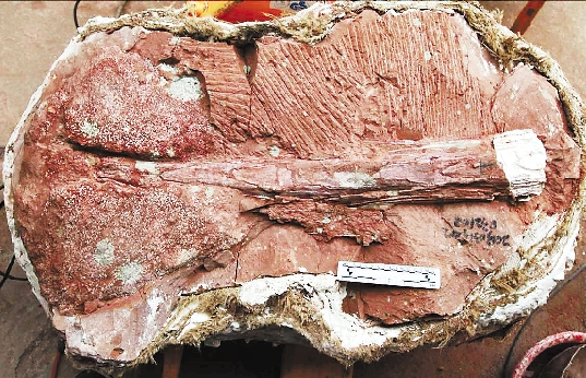 出土的甲龙尾锤化石 浙江自然博物馆供图
