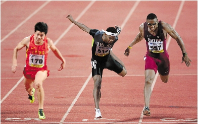 7月4日,在亚洲田径锦标赛男子100米比赛中,苏炳添(左)以10秒17的成绩夺得冠军。韦永丽则以11秒29的成绩夺得女子100米冠军。 新华社发