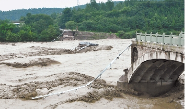 7月9日在四川绵阳江油市拍摄的老青莲大桥垮塌事故现场。 新华社发
