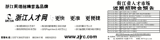 | 7月18日(周四) | 浙江省营销、外贸、管理、财务、文秘、广告专场招聘会 |