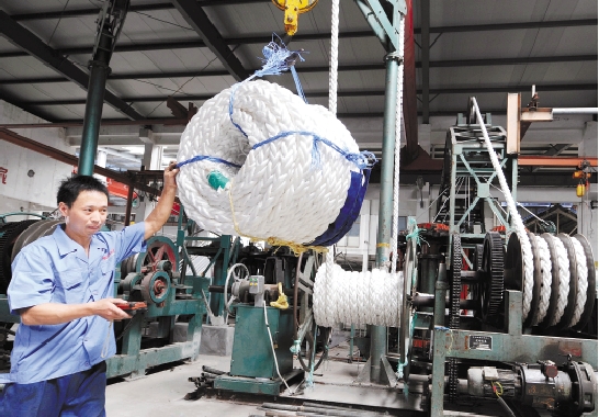 浙江四兄绳业有限公司和相关科研院所合作攻关,采用先进工艺生产出具有国际先进水平的超高分子聚乙烯绳索,能承受56吨的拉力,强度是钢丝绳的15倍,成为神舟系列飞船专用绳索。 杨辉 摄