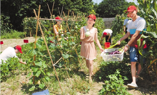 7月9日,杭州市滨江区六和社区的党员志愿者在“党员爱心菜园”里劳动。这个社区党总支将钱塘江畔一亩多的闲置地整理出来,由3家企业党组织和75户党员家庭认领并义务种植,蔬菜收获后送给困难群众和孤寡老人。 本报记者 叶寒青 通讯员 程远娟 摄 |